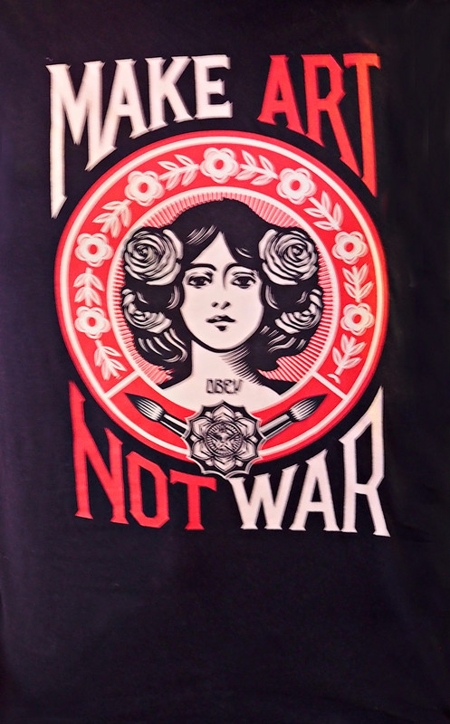 "Make Art Not War" design on a tee-shirt seen recently.