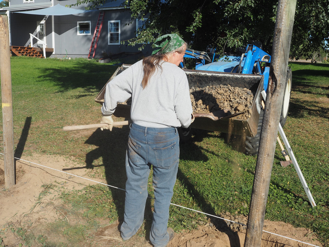 Nevertheless Laurie has post holes dug and filled with gravel.
