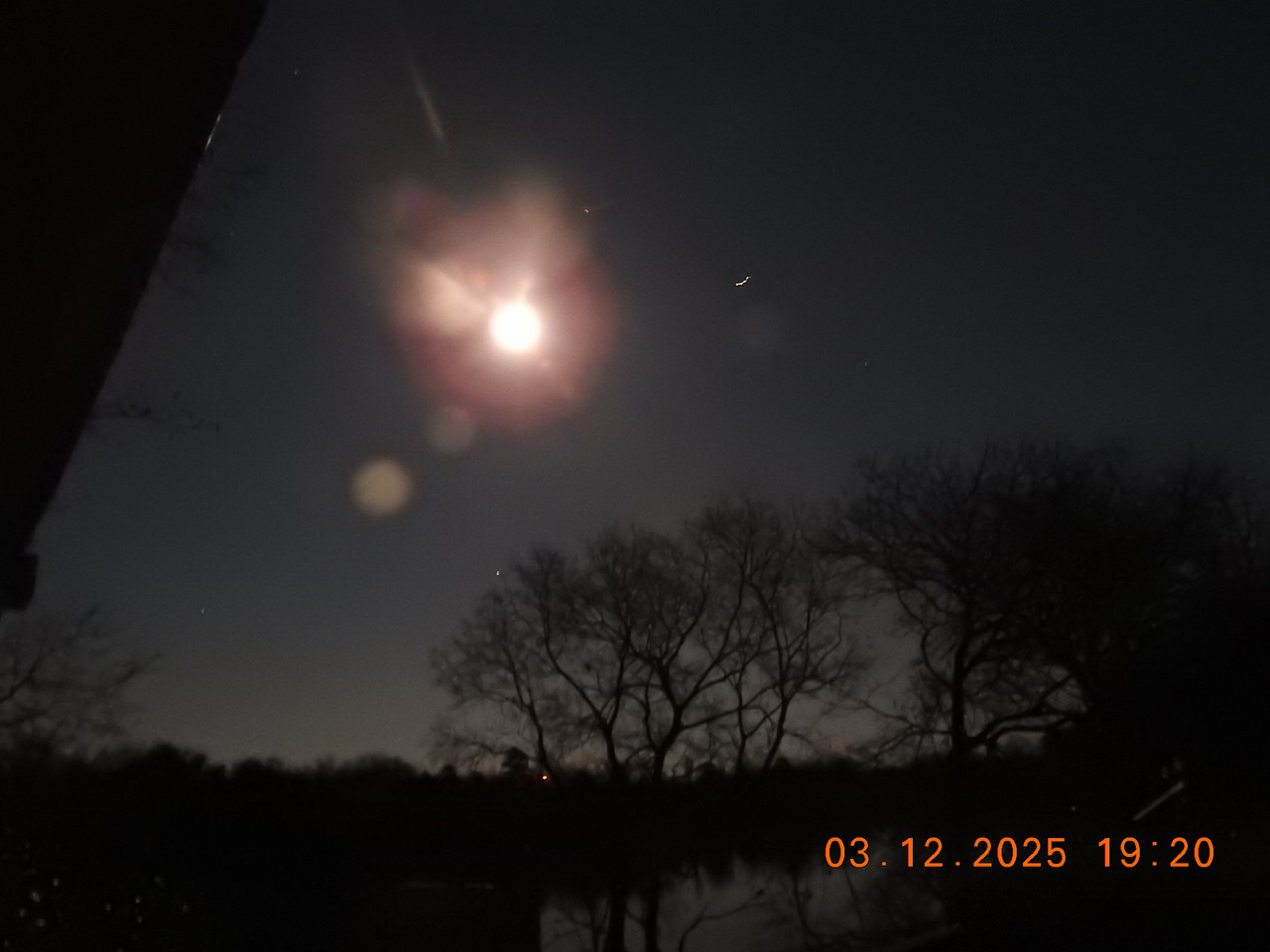Moon over creek, rising, back door, and over river